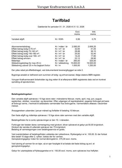 Se de nuværende og tidligere fjernvarmepriser i Vorupør.